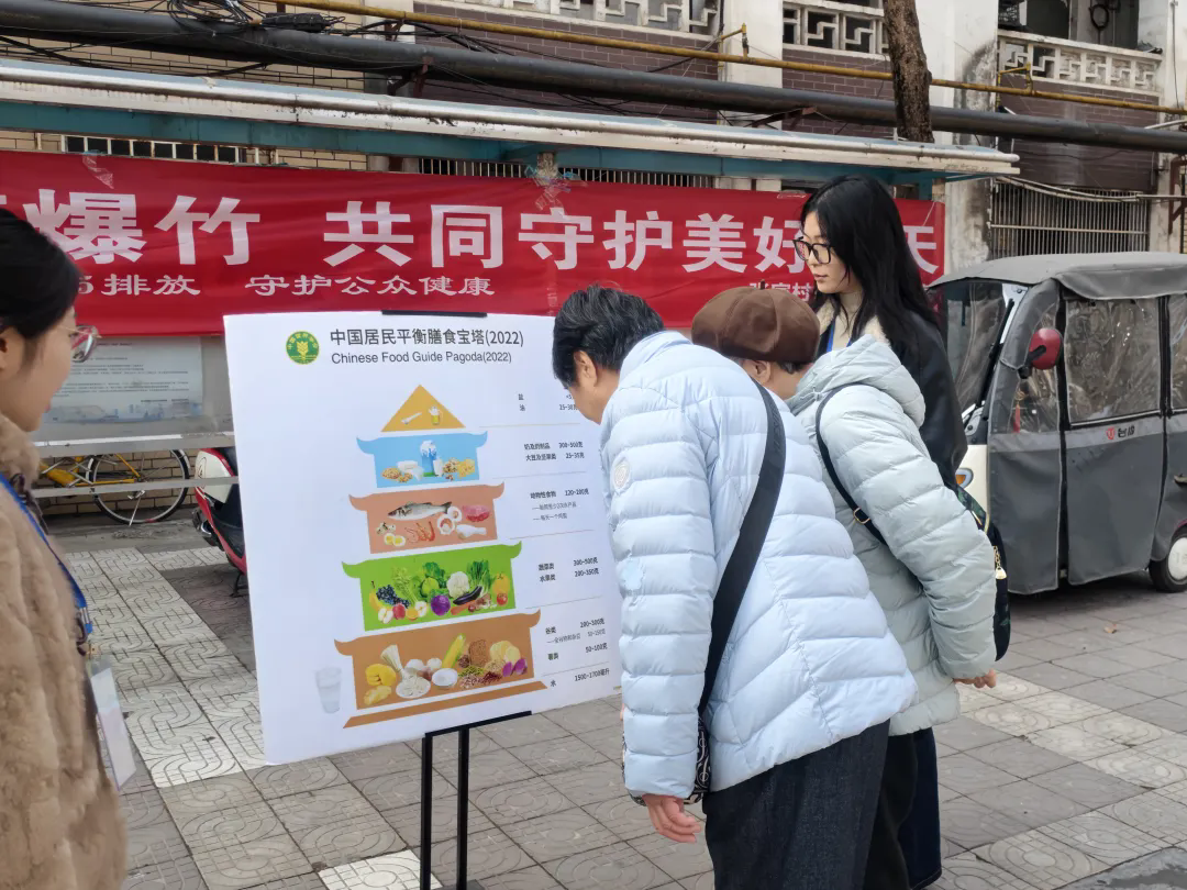 活动现场暖意融融,宣讲团成员分工协作、有序服务。他们在居民楼出入口、楼道公告栏张贴海报,营造“人人学食安、人人讲健康”的浓厚氛围;同时向过往居民发放手册,细致解读配料表识别、控盐控油等技巧,耐心解答饮食困惑;在膳食宝塔展板前,志愿者们逐层拆解食物营养功效与摄入量,结合居民饮食习惯给出科学搭配建议,引导大家树立健康膳食理念。