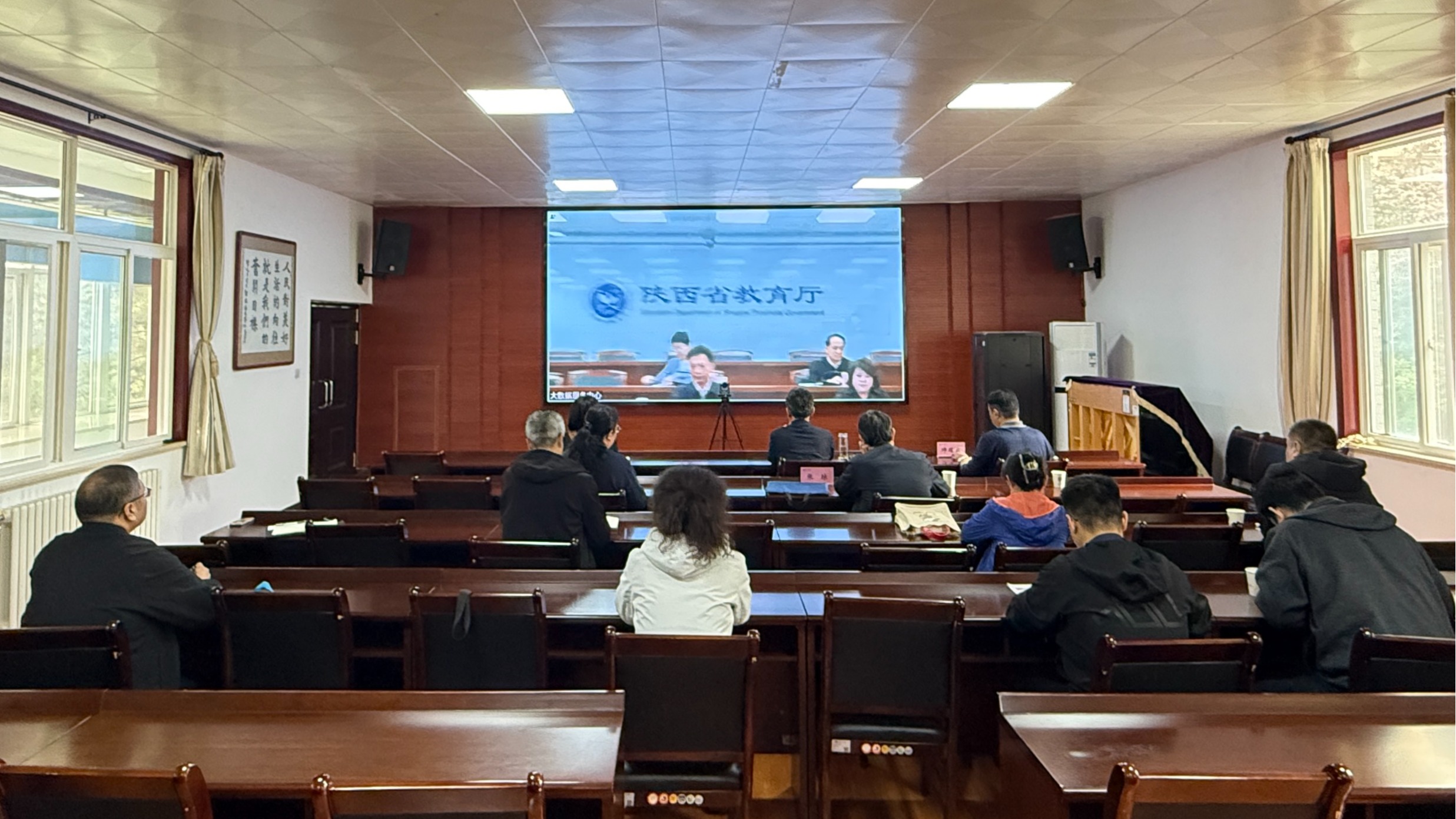 4月15日,陕西省教育厅召开2026年全省教育系统老干部工作视频会议。省委教育工委委员、省教育厅副厅长申雪峰出席会议并讲话,离退休人员服务管理处处长张婷主持会议。我校党委副书记赵作纽在分会场参会,离退休工作处全体工作人员参加。