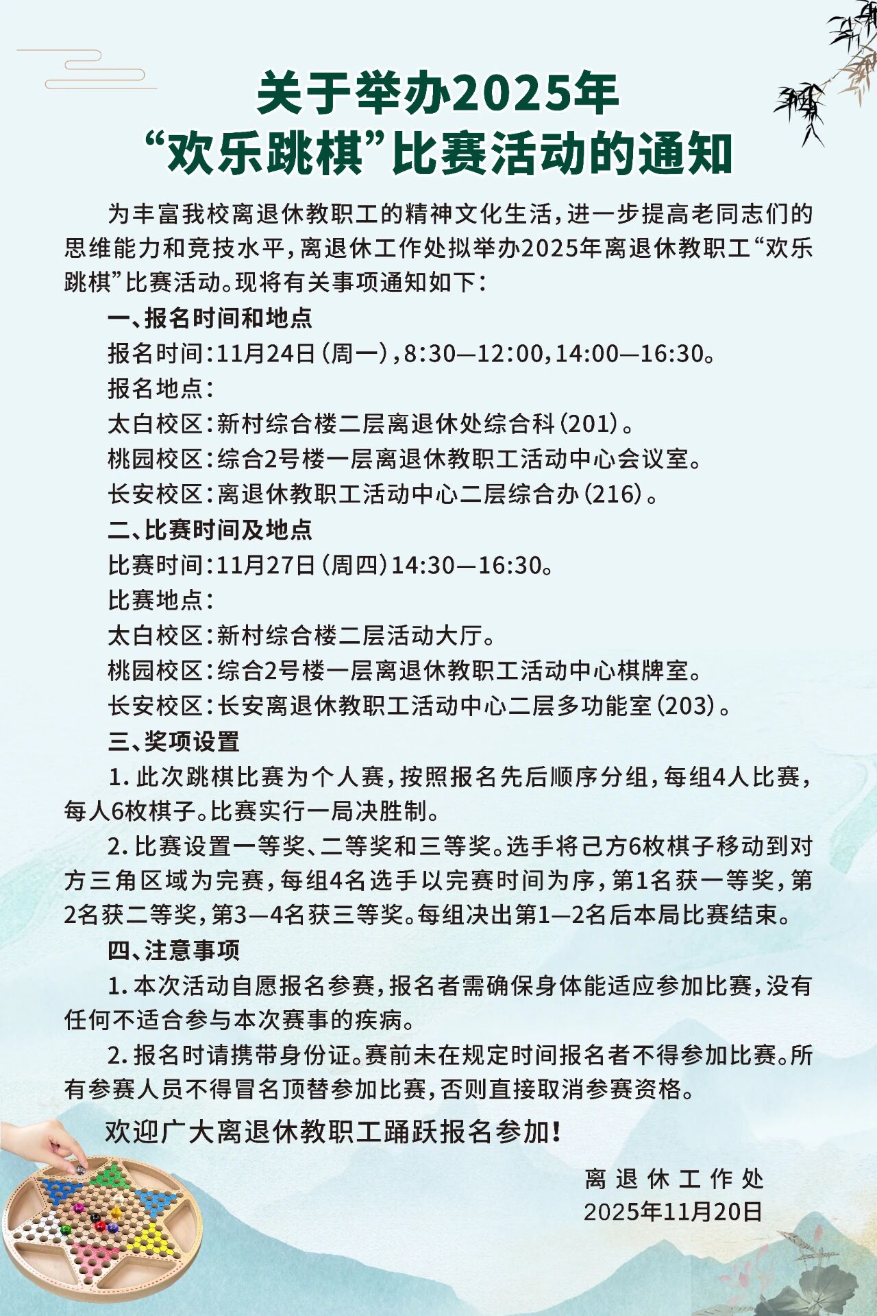 关于举办2025年“欢乐跳棋”比赛活动的通知