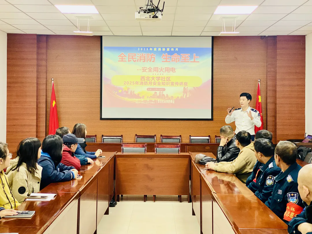 为深入践行“全民消防 生命至上”的安全理念,切实筑牢社区消防安全“防火墙”,提升居民应急避险与自救互救能力,近日,西北大学社区联合西安市五进消防知识科教站,精心组织开展冬季消防安全主题讲座,以实用知识与实操指导,为居民送上一份干货满满的“安全大礼包”,社区工作人员、居民代表、新村保安和清洁工等30余人参加了本次讲座,共同学习消防技能、守护家园平安。