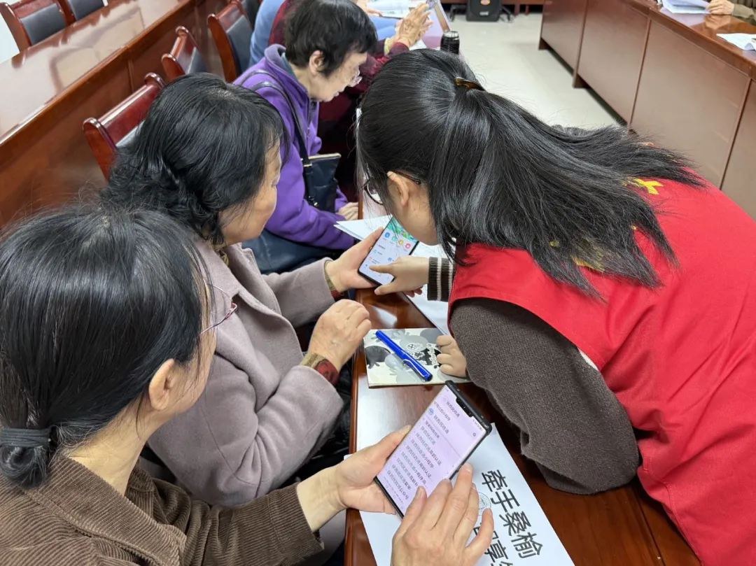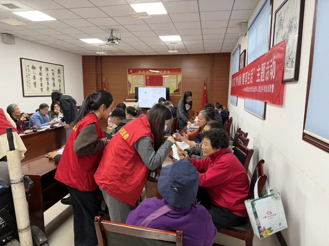 志愿者们穿梭在老人之间,耐心地讲解并辅导每一个步骤,细致且完善地教导两项业务的核心知识与操作方法,确保每位老人都能跟上节奏。现场秩序井然、氛围轻松,老人们在交流分享中学习技能,在贴心指导下掌握本领,收获满满。课后,老人们纷纷表示,智能手机课堂的开展十分贴合他们的需求,通过本次培训,不仅学会了如何用手机办理高龄补贴和养老认证,省去了跑腿的麻烦,还感受到了社区的关怀和温暖,结交了许多志同道合的朋友。